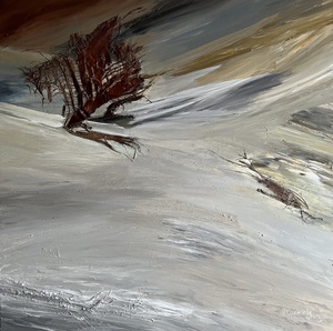 2012Dit werk, met witte tinten, die overgaan naar beige en grijze, geglaceerd in tranparante lagen, wordt geschonken voor "SAMEN TEGEN REUMA" Materiaal, kleur en compositie stralen een rust uit, die weldadig aandoet.