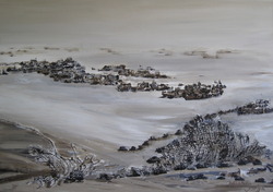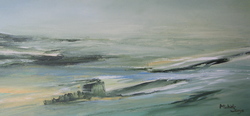 Sonja is geboren en getogen in Deurne. Ze toonde ook al vroeg interesse voor tekenen en schilderen. Door omstandigheden koos ze voor een regentaatsopleiding tailleur en flou of snit en naad. Niet lang daarna volgde ze een extra opleiding om technologische opvoeding te geven in het secundair onderwijs. Ze slaagde erin om de leerlingen te enthousiasmeren en aan die tijd heeft ze vele mooie herinneringen. Toen ze 45 jaar was, gaf ze haar leven echter een nieuwe wending en koos ze er resoluut voor om zich voltijds aan het schilderen te wijden. Ze volgde tal van cursussen in binnen-en buitenland. Meestal begint Sonja aan twee of drie werken tegelijk in hetzelfde kleurenpalet en gaandeweg evolueert elk werk in een specifieke richting. Sonja werkt heel intens en dan bestaat de wereld rondom haar niet meer. Na uren van uiterste concentratie is ze totaal leeg, maar na de inspanning volgt de ontlading en Albert vindt het dan een uitgelezen moment om een aperitiefje te serveren. Ondertussen heeft Sonja een indrukwekkend oeuvre verzameld dat van 1994 tot vandaag van de ene tentoonstelling naar de andere verhuist. 'Reizen' is een belangrijk thema in haar werk. Sonja heeft de halve wereld gezien. De indrukken die ze opdoet tijdens haar reizen slaat ze op in haar geheugen en later krijgen ze gestalte in een persoonlijk verhaal op doek. In een aantal werken integreert ze levenssymbolen die behoren tot de cultuur van een land, een volk waarin ze zich graag verdiept. Vauthibault, het idyllische plekje in de Loirestreek, heeft haar meermaals geïnspireerd. Het zacht glooiende landschap met zijn weidse blauwe lucht straalt een vredige rust uit. Een andere keer schildert ze het uitzicht vanuit haar kamer: de ondergaande zon die alles in een vurige, rode gloed onderdompelt. Sonja schildert met acryl, heel vaak op een doek van 1m bij 1m. Ze experimenteert graag met onverwachte materialen in de opbouw van haar schilderijen. Daarvoor sprokkelt ze voortdurend allerlei soorten materiaal bijeen die ze later gedoseerd verwerkt in haar doeken: kiezeltjes, rafels jute, krantenpapier, zand, plantenvezels… Het meest recente werk is duidelijk meer geabstraheerd: vage contouren, maar toch een uitgekiende compositie en subtiele kleuren die in vele lagen opgezet zijn. Ze gebruikt ook vaker het paletmes. Sonja houdt haar hele leven al van de zee, daarom is het een thema waarnaar ze steeds terugkeert. Als ze de beweging van het water schildert is het alsof ze erin opgenomen wordt. ' Stormy Sea ' : Ontelbare tinten blauw komen woest aanrollen op het doek. ' In de diepte van de zee ': Hier vat ze op treffende wijze het mysterieuze van de wereld onder water in een schitterend contrast tussen licht en donker. ' Twee aan zee ' : In dit werk wordt hetzelfde thema daarentegen uitgewerkt in heel subtiele natuurtinten van zand. Het is een geslaagde verstilde impressie. Het werk van Sonja is de voorbije jaren meermaals geselecteerd en bekroond Toen ze vorig jaar uitgenodigd werd om haar werk te exposeren in het Elzenveld in Antwerpen vond ze dat een hele eer en een blijk van waardering voor haar werk. Dit jaar werd ze mee geselecteerd voor deelname aan de Cadixroute d.i. een kunsttraject in open lucht op het Eilandje met als thema 'Wind en Water'. Last but not least werd in januari dit jaar ook haar werk 'Palmschors' gepreselecteerd door een jury van de Canvas-Collectie in het MUHKA. ' Palmschors ' is een drieluik waarin de vezels van palmschors uit Tunesië verwerkt werden. Het werk valt op door het lijnenspel, de toetsvoering en de sobere kleurvlakken. Door het formaat komt deze krachtige compositie robuust over en trekt het de aandacht naar zich toe.Ik ben er zeker van dat het voor jullie een interessante ontdekkingstocht wordt. Sonja, de enthousiaste spraakwaterval en Albert, de rustige vastheid wens ik nog heel veel succes!